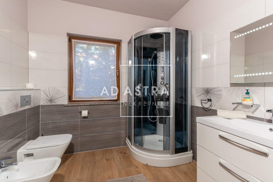 Stan ima vlastiti bazen (5x8), vlastitu kotlovnicu u podrumu, automatsko navodnjavanje okoliša, podno grijanje na toplinsku pumpu te fenkojlere za grijanje i hlađenje.