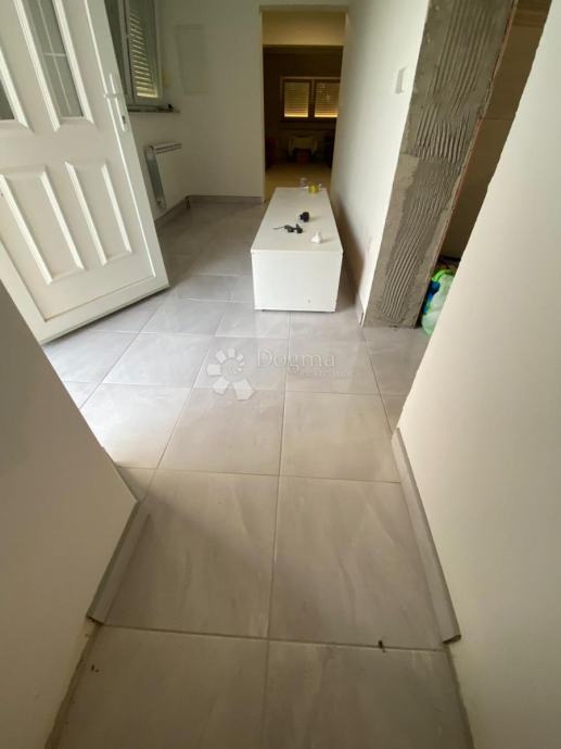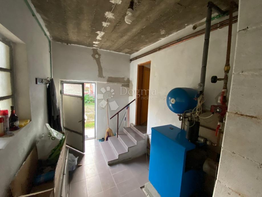 Unutrašnjost je potpuno uređena: novi podovi, zidovi, keramika, krov i grijanje (peć na drva + bojler-plin). Prizemni raspored prostorija proteže se dubinom parcele, čineći kuću prostranom i funkcionalnom.