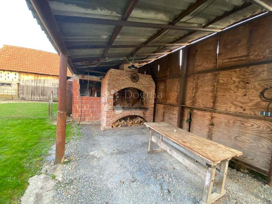 Garaža i velika nadstrešnica s pecarom za roštilj omogućuju nesmetano parkiranje, dok dvorište nudi prostor za igru, odmor ili vrt. Iza kuće nalazi se velika obrađiva zemlja s voćkama — idealno za obiteljsku organsku proizvodnju ili privatnu oazu prirode.