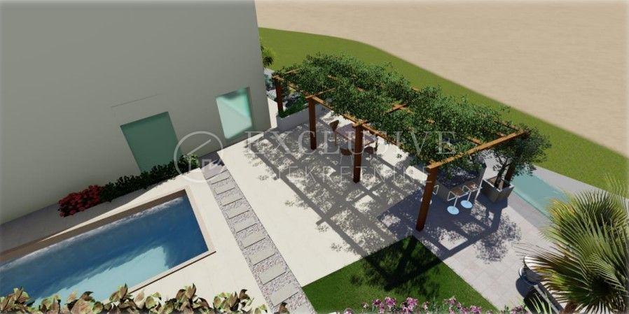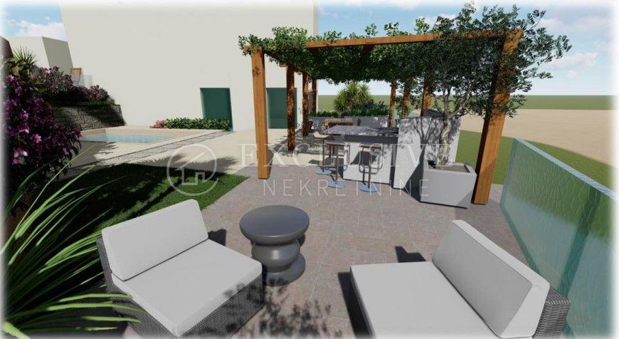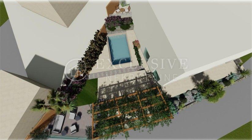 Ovaj stan ima vlastitu okućnicu s bazenom i terasom te pogled na more.
