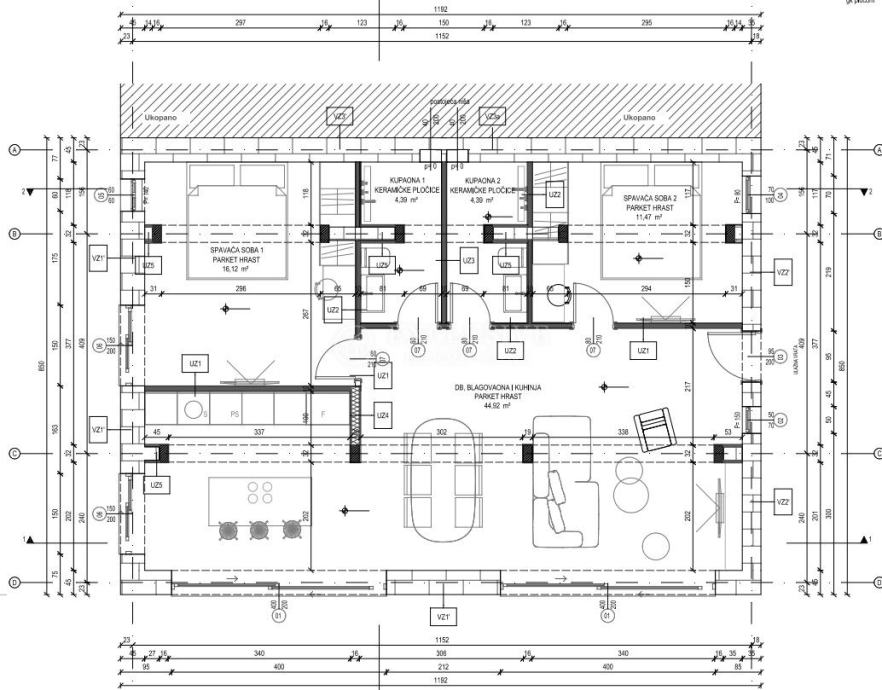 Grijanje i hlađenje pomoću podnog grijanja (dizalica topline) i klima uređaja.