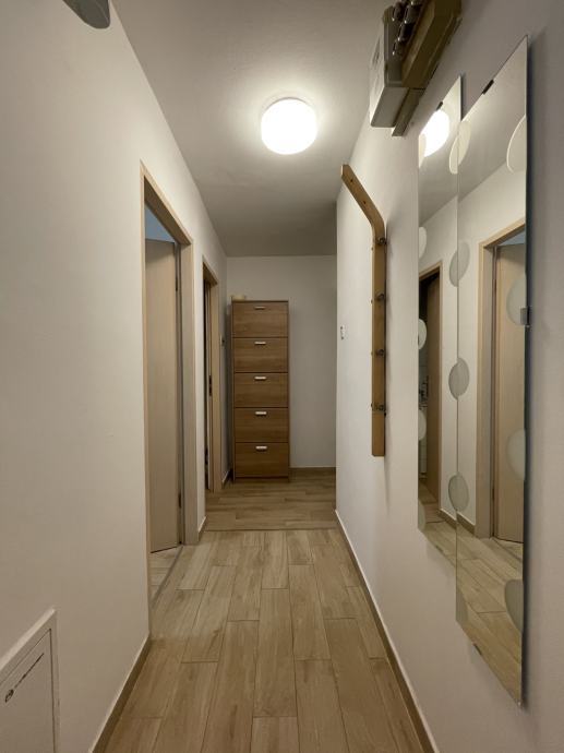 Stan se sastoji od hodnika, kupaonice, kuhinje s blagovaonicom i sobe.
