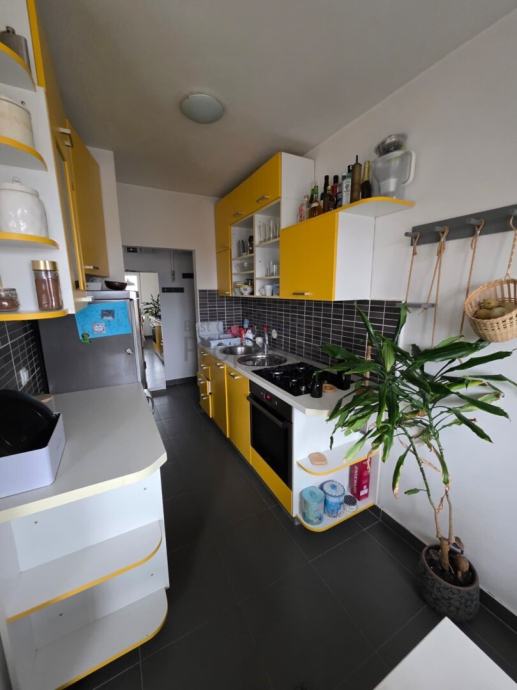 Sastoji se od prostranog i svijetlog dnevnog boravka povezanog s kuhinjom i blagovaonicom (open space koncept), jedne spavaće sobe, kupaonice i balkona sa vlastitim spremištem (prekrasan, otvoren pogled na Medvednicu i panoramu Zagreba)
