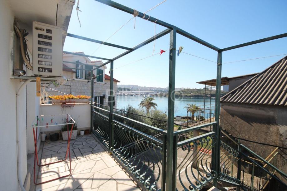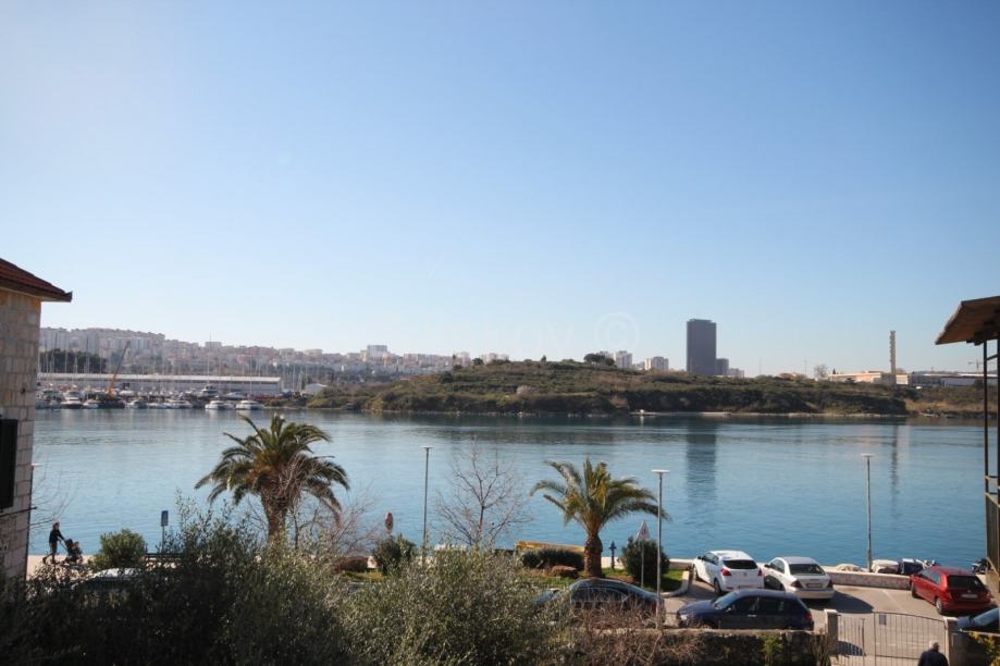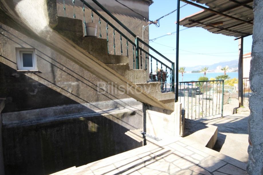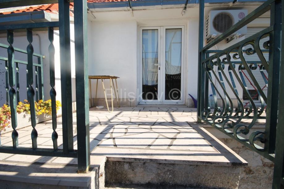 Vranjic, dvojna kuća na tri etaže ukupne stambene površine 82m2 s dvorištem površine 16m2 i dvije terase, smještena u drugom redu od mora. Vanjsko stubište vodi do svake etaže i oba stana na katu imaju terase s pogledom na more.