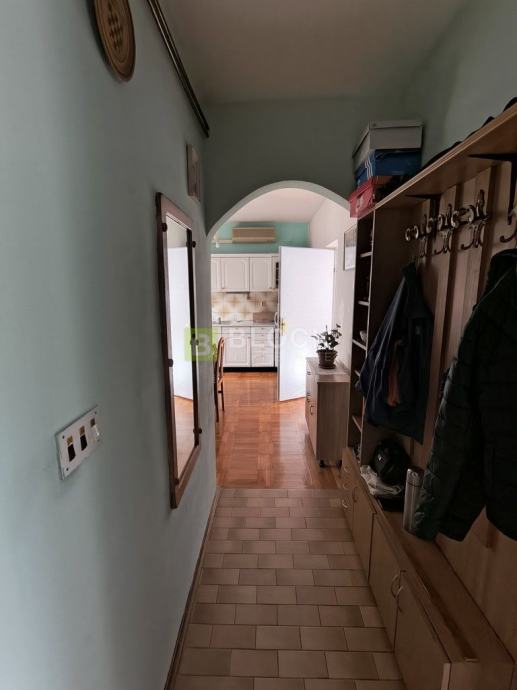 Prodaje se trosoban stan, netto korisne površine 92 m2, netto korisne vrijednosti 72,53 na prvom katu male stambene zgrade u Donjem Vrapču. Stan se sastoji od tri sobe, dvije spavaće, te dnevnog boravka, kuhinje, kupaonice, te ostave. Također, stan ima i dva balkona koja gledaju na istok, te terasu koja je smještana na zapadnom dijelu.