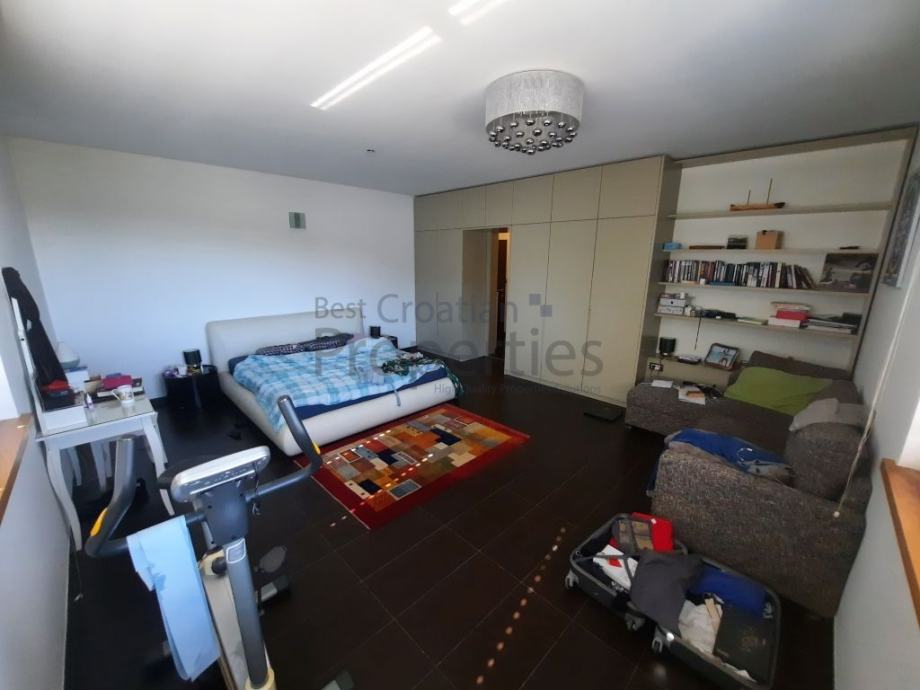 Stubištem iz hodnika dolazi se na prvi kat na kojem se nalazi master spavaća soba s kupaonicom i garderobom te još 3 dječje sobe, gostinjska soba, još jedna kupaonica te radni prostor.