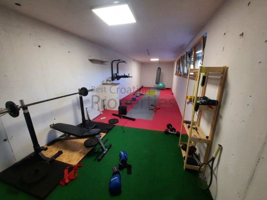 U podrumu kuće nalaze se velika teretana, veliko spremište s kotlovnicom i hodnik s policama također za pohranu stvari.Sa stražnje strane kuće nalazi se prekrasan vrt s roštiljem i ljetnom kuhinjom do kojih se može doći s pristupnog puta za automobile ili iz dnevnog boravka.