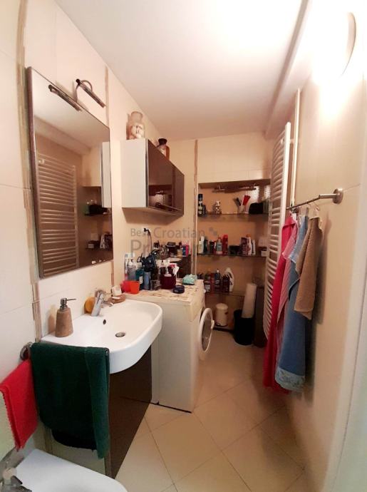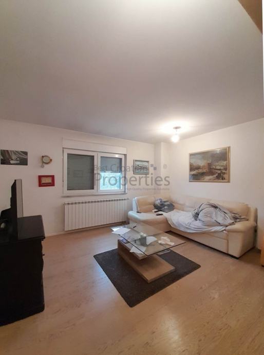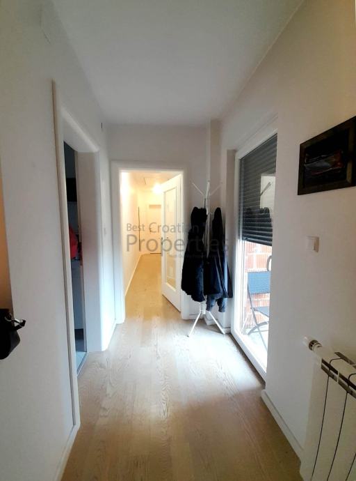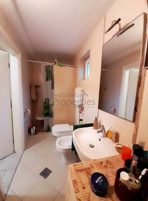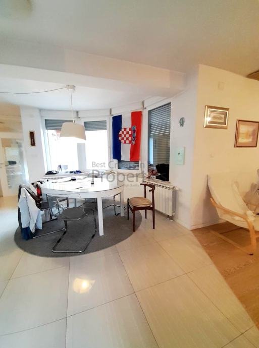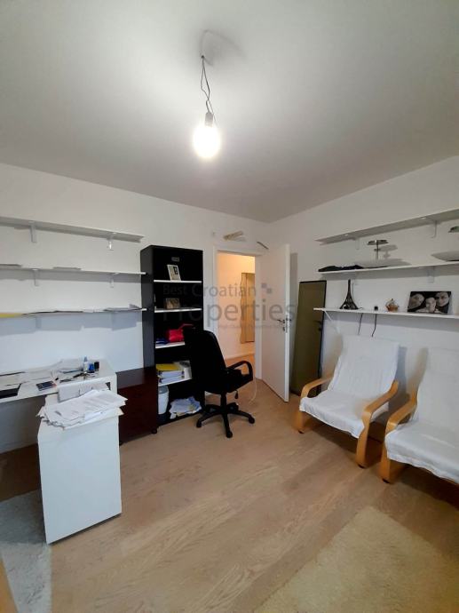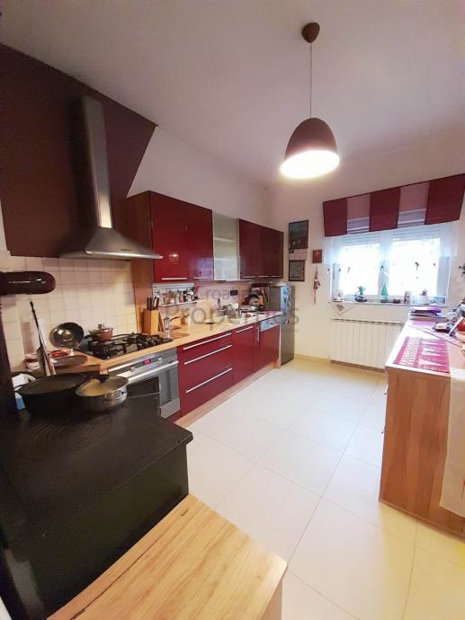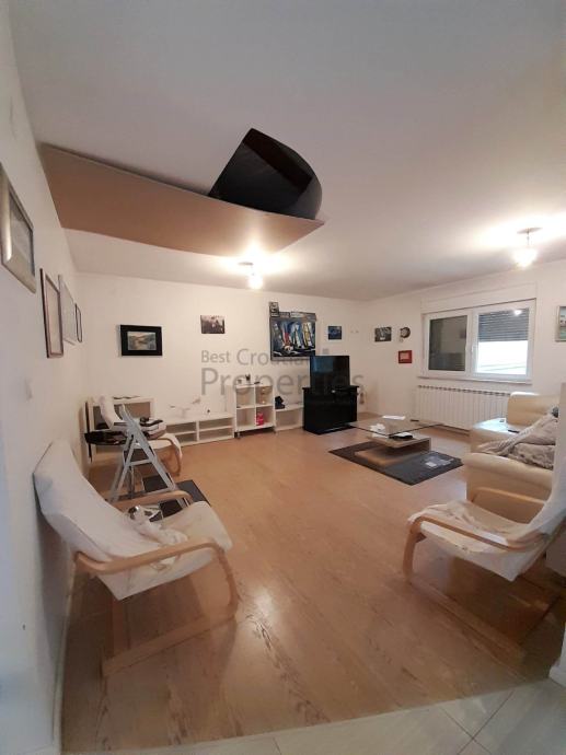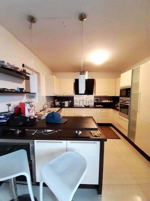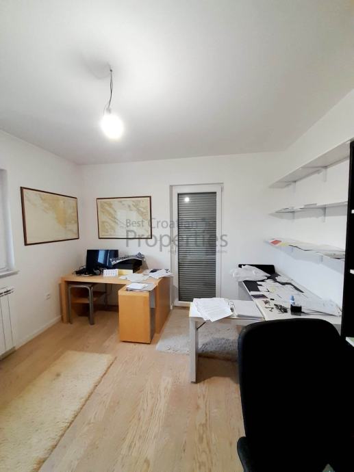 Stan na katu je dvoetažni - u prizemlju je jedna velika soba i kotlovnica koja se može urediti kao kupaonica a unutarnje stepenice vode na prvi kat gdje su tri spavaće sobe, veliki dnevni boravak, kuhinja s blagovaonicom, kupaonica i dvije terase od kojih jedna vodi u stražnje uređeno dvorište. U potkrovlju u koje se ulazi iz tog stana ima još prostora za proširenje.