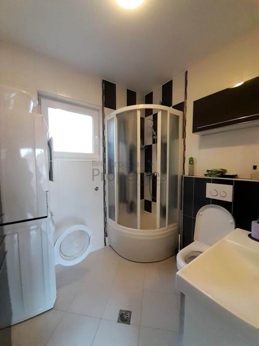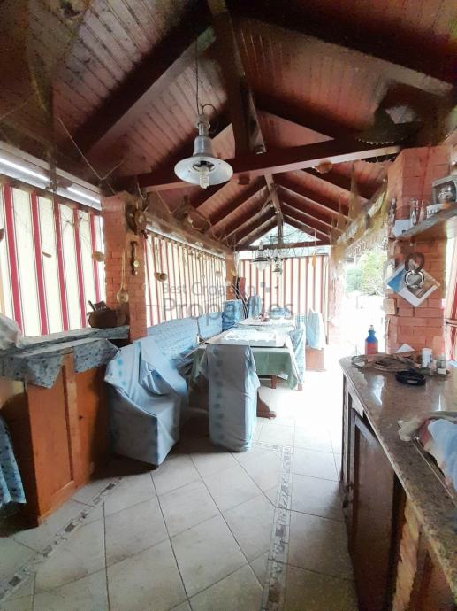 Kuća nije do kraja završena (nedostaje fasada, te uređenje unutarnjih stepenica i terasa) te kupac može nedovršene dijelove oblikovati po svom ukusu.Uz cestu, a ukopana u teren kao samostalna građevina se nalazi garaža za dva automobila od 37 m2, s automatskim rolo vratima. Kraj garaže je put koji vodi do kuće a tamo su još dodatna parkirna mjesta.U mirnom i zaklonjenom vrtu je velika sjenica (28 m2) s vanjskim roštiljem i ljetnjom kuhinjom.Dijelovi kuće koji su izvan gabarita građevne dozvole su kasnije legalizirani tako da je moguća kupnja kreditom banke.Pogodno za veću obitelj koja ima naviku boraviti u prirodi.Lokacija je izvrsna jer u krugu 300 metara ima sve sadržaje potrebne urbanom čovjeku.