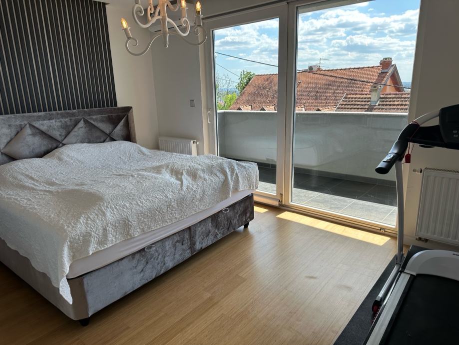 Prodaje se moderno uređen i opremljen stan koji zauzima cijeli kat zgrade u mirnoj ulici u Vrapču. Smješten je odmah iza bolnice Vrapče, svega 600 m pješice od škole, vrtica, doma zdravlja i tržnice – idealna lokacija za obiteljski život.