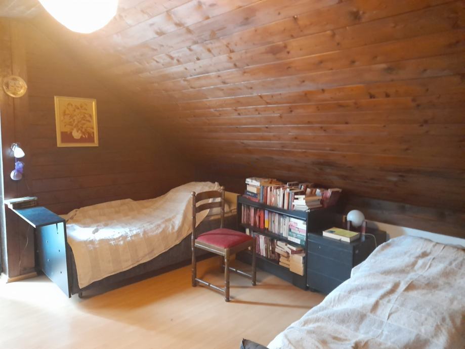 Prizemlje se sastoji od ulaznog hodnika, prostranog dnevnog boravka s blagovaonicom, radne sobe, kupaonice i toaleta posebno te stepeništa za kat. Na katu su 4 spavaćesobe i još jedan toalet.