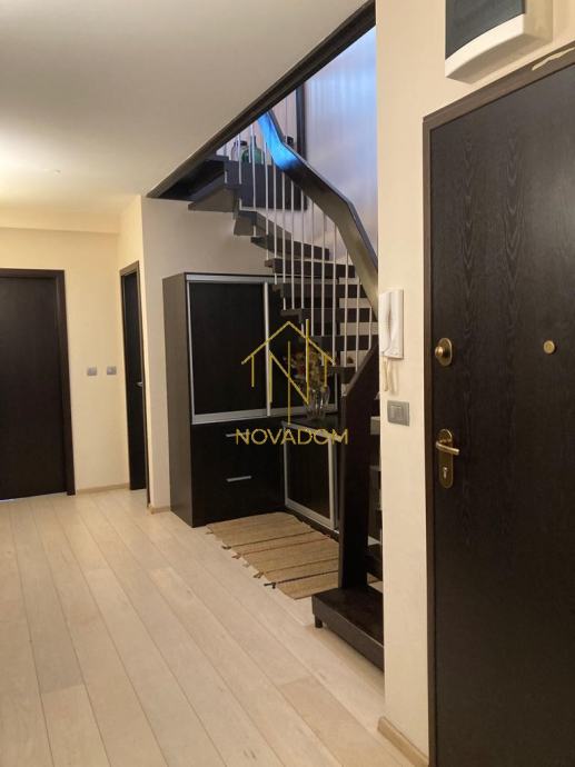 Vrapče, Jačkovinski Klanec. Prodaje se prekrasan i svijetao te kompletno luksuzno namješten 4s penthouse u zgradi novije gradnje u potpunom miru i zelenilu. Stan je moderno i vrhunski opremljen kvalitetnim materijalima, a sastoji se od; donje etaže (ulazni prostor, 3 spavaće sobe, garderobe, loggie, 2 kupaone s wc-om) i gornje etaže (dnevni boravak, kuhinja s blagovaonom,wc, 2 loggie s prekrasnim panoramskim pogledom na grad). Stanu pripada spremište u prizemlju zgrade te 2 parkirna mjesta ispred zgrade.