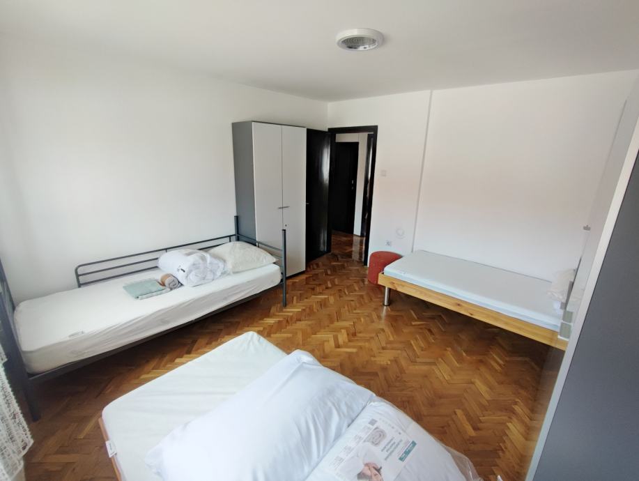 U prizemlju kuće nalaze se 3 spavaće sobe(u svakoj sobi 3 kreveta), kuhinja sa blagavaonom (2 frižidera sa ledencom i pečnica na plin) i kupaonica sa WC-om (u kojoj se nalazi perilica sa rublje).
