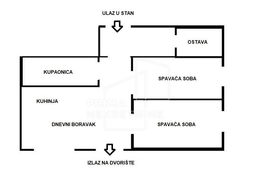 U prodaji je trosoban stan površine 67 m2 u prizemlju dvokatnice izgrađene 2017. u naselju Vrapče.