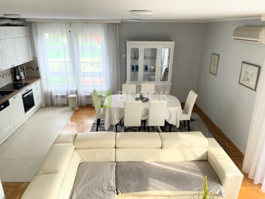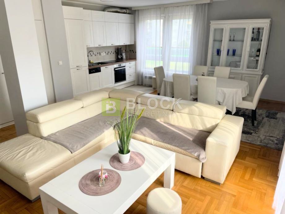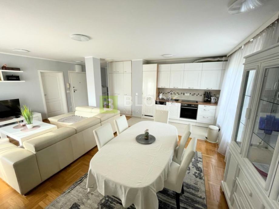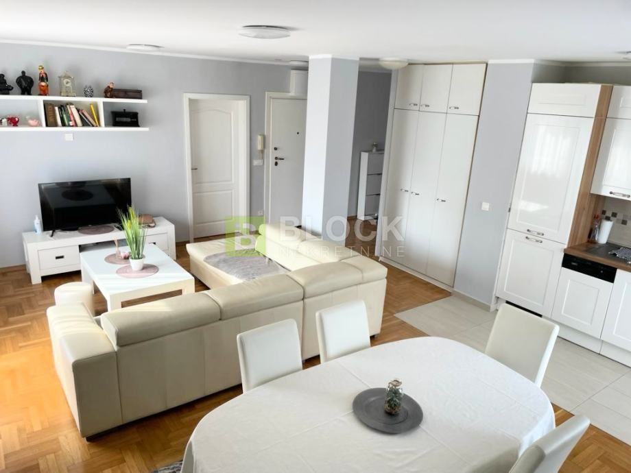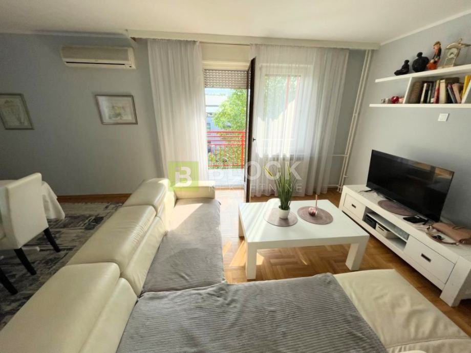 U sklopu stana nalazi se veliki dnevni boravak, dvije spavaće sobe (jedna spavaća soba ima vlastiti balkon) i novouređena kupaona.