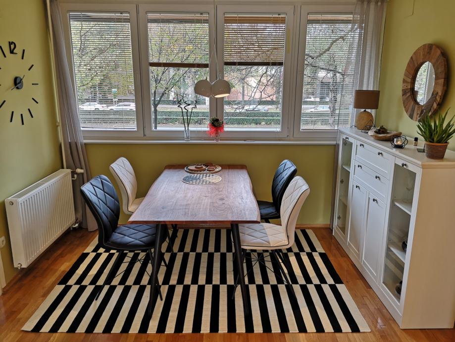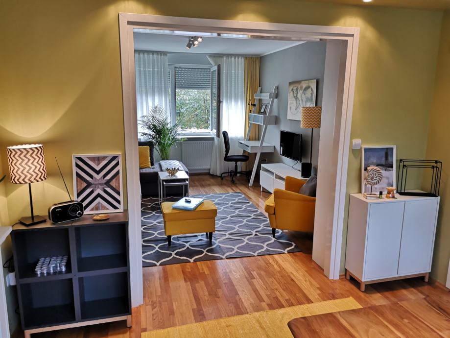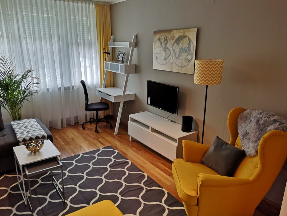 Vrlo komforan novouređeni stan u Vukovarskoj, blizina Savske. Sastoji se od ulaznog hodnika, blagovaonice, dnevnog boravka, spavaće sobe, kuhinje, kupaonice i odvojenog WC-a. Kućni ljubimci nisu dozvoljeni.