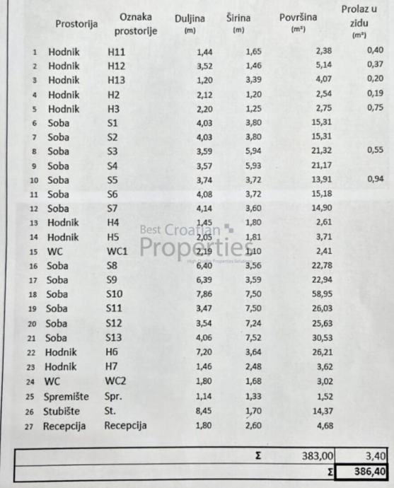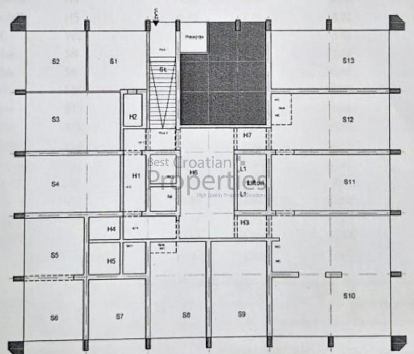 Ukupno ima 386,40 m2 i sastoji se od nekoliko hodnika spremišta, toaleta i 13 velikih kancelarija.