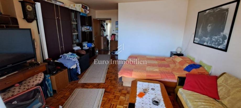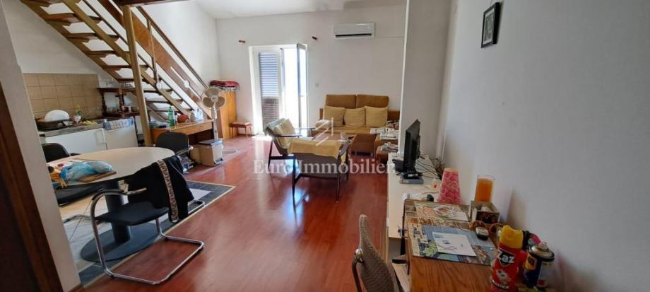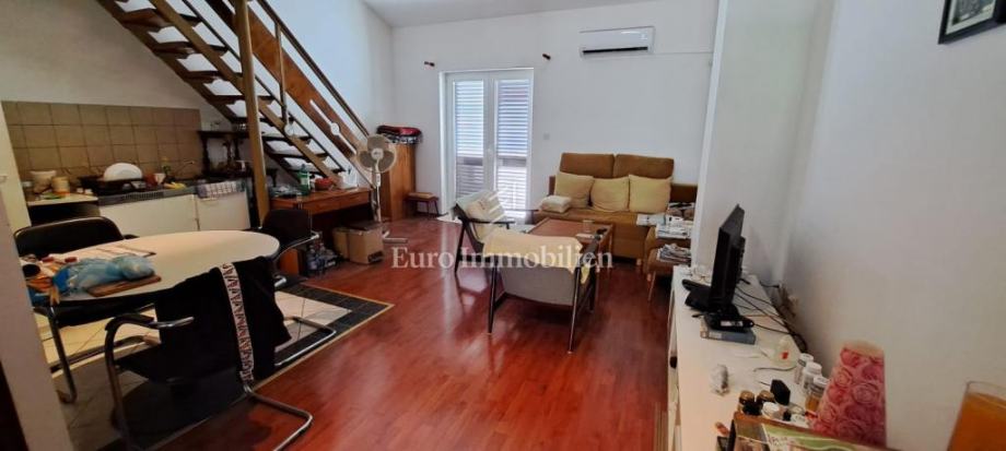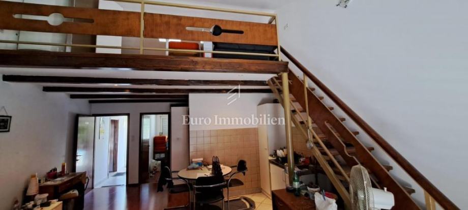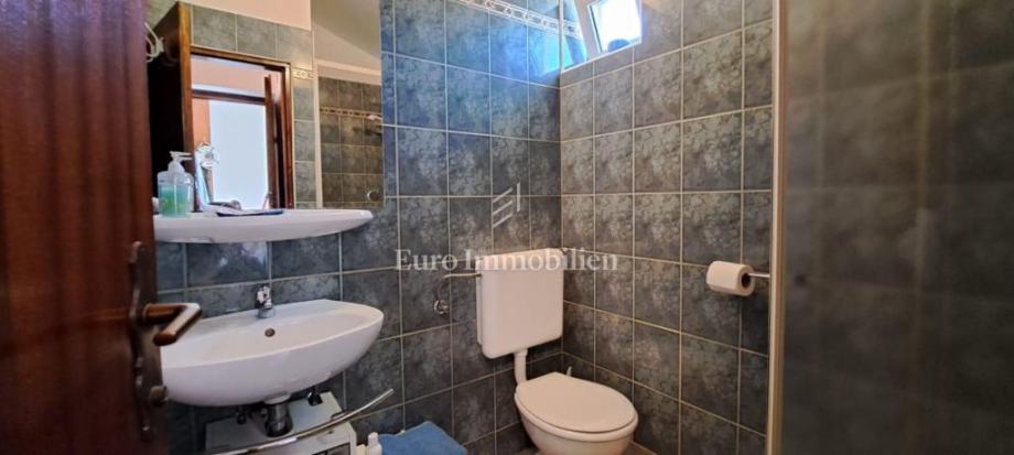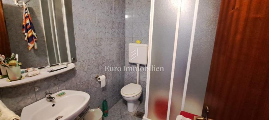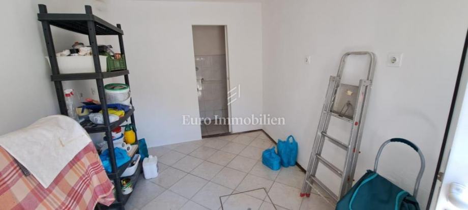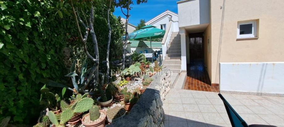 Kuća bruto površine 372 m2 i neto površine 245,49 m2 proteže se na tri etaže. Na prvoj etaži su dvije garaže, treća garaža koja je zatvorena jer služi kao spremište i još jedan dodatni prostor koji je služio kao radionica s toaletom. Na drugoj etaži, koja je visoko prizemlje nalaze se dva studio i jedan jednosoban apartman. Svi apartmani imaju balkon s otvorenim pogledom na more i pristup na zajedničku veliku terasu s roštiljem kojoj se može pristupiti iz svih apartmana kuće. Na trećoj etaži se nalaze tri studio i jedan jednosoban apartman koji ima i galeriju gdje se može napraviti dodatna soba. Svaki apartman ima svoje parkirno mjesto ili garažu. Kuća je dobro održavana, ali joj je potrebno osvježenje.