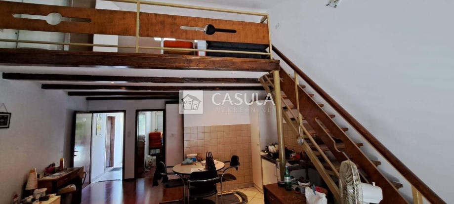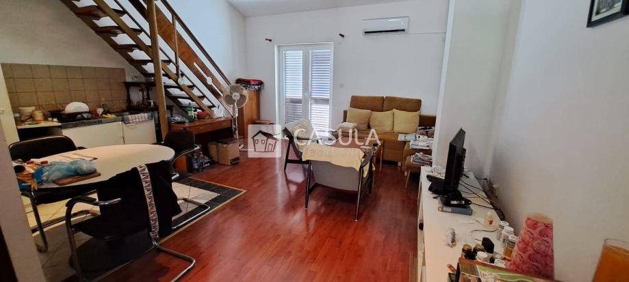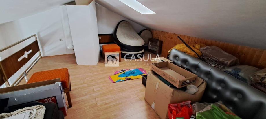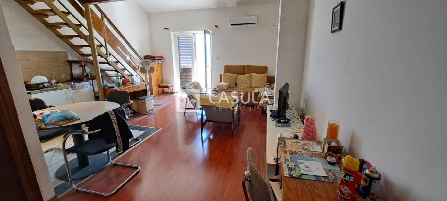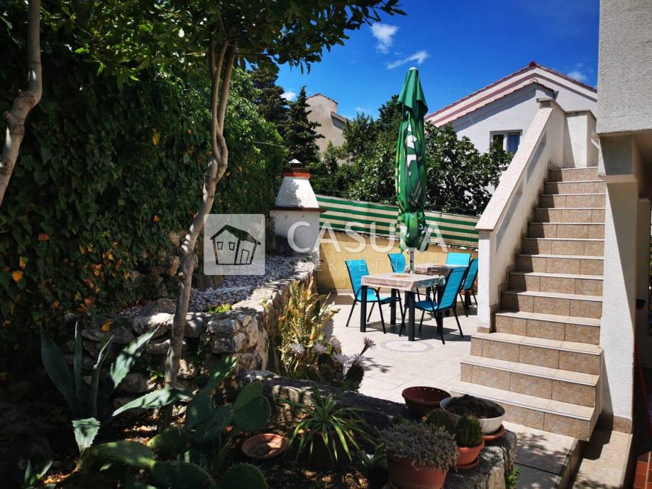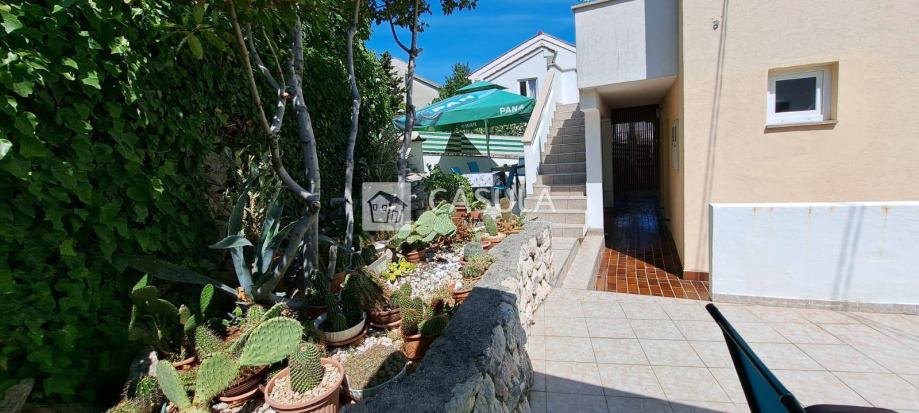 Kuća bruto površine 372 m2 i neto površine 245,49 m2 proteže se na tri etaže. Na prvoj etaži su dvije garaže, treća garaža koja je zatvorena jer služi kao spremište i još jedan dodatni prostor koji je služio kao radionica s toaletom. Na drugoj etaži, koja je visoko prizemlje nalaze se dva studio i jedan jednosoban apartman. Svi apartmani imaju balkon s otvorenim pogledom na more i pristup na zajedničku veliku terasu s roštiljem kojoj se može pristupiti iz svih apartmana kuće. Na trećoj etaži se nalaze tri studio i jedan jednosoban apartman koji ima i galeriju gdje se može napraviti dodatna soba. Svaki apartman ima svoje parkirno mjesto ili garažu. Kuća je dobro održavana, ali joj je potrebno osvježenje.
