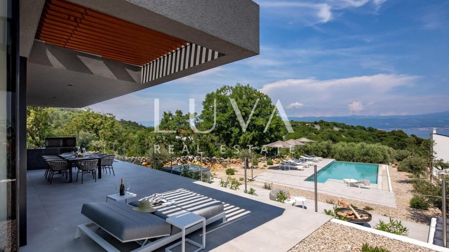 Moderna vila s bazenom i panoramskim pogledom na more – dugoročni najam u Vrbniku, otok Krk