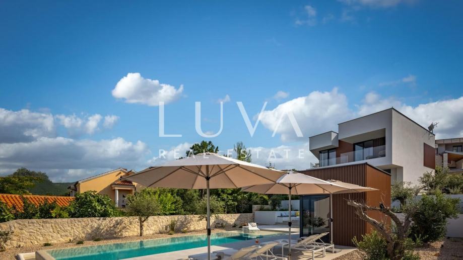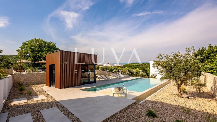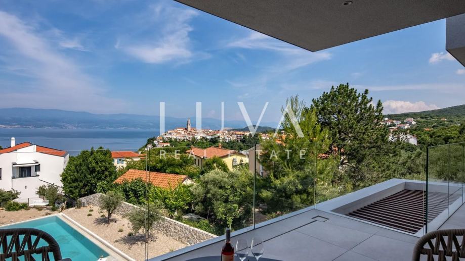 Moderna vila s bazenom i panoramskim pogledom na more – dugoročni najam u Vrbniku, otok Krk