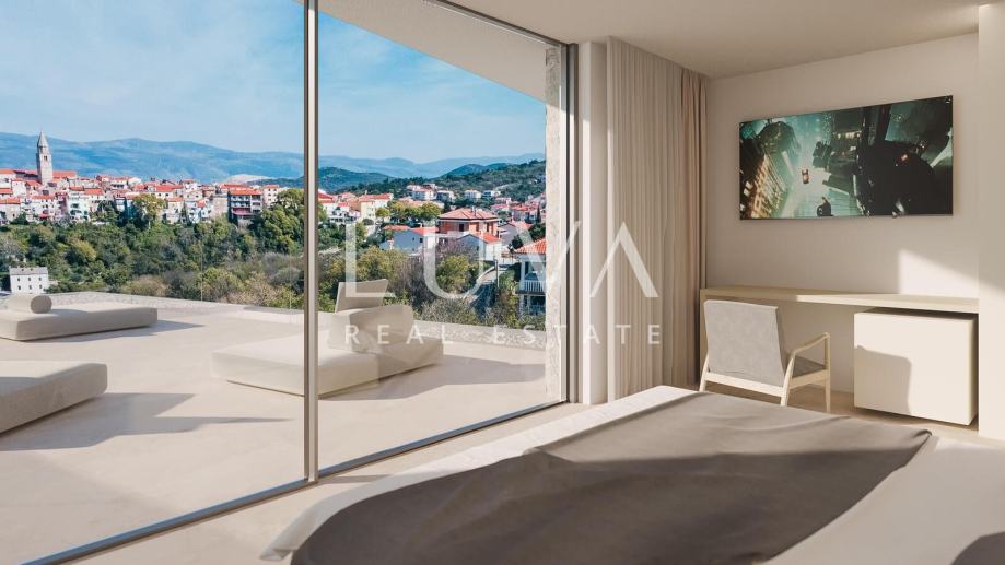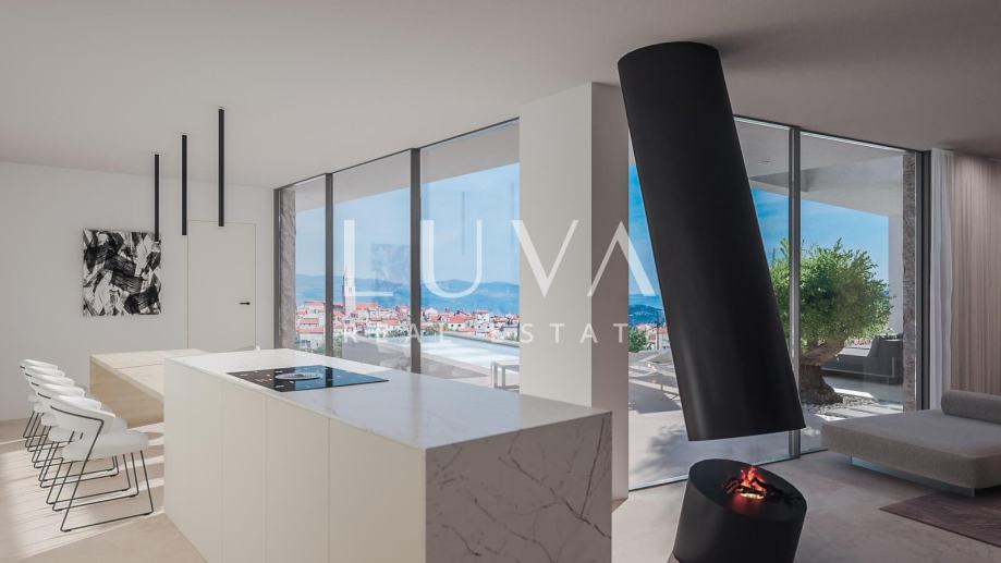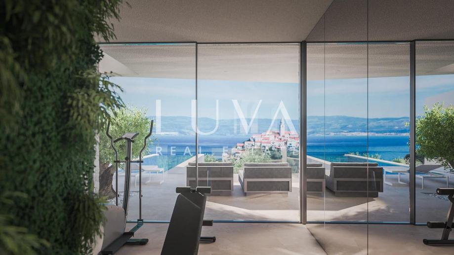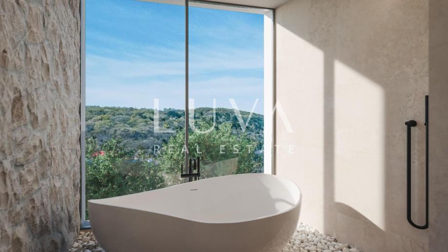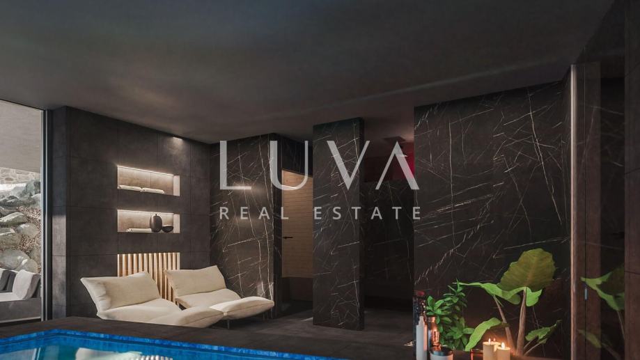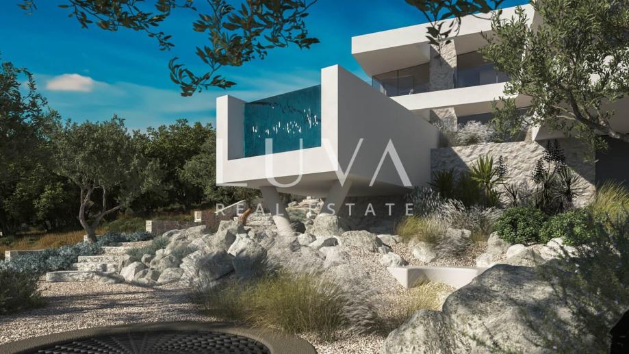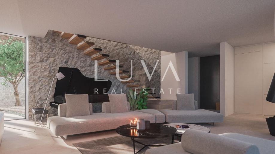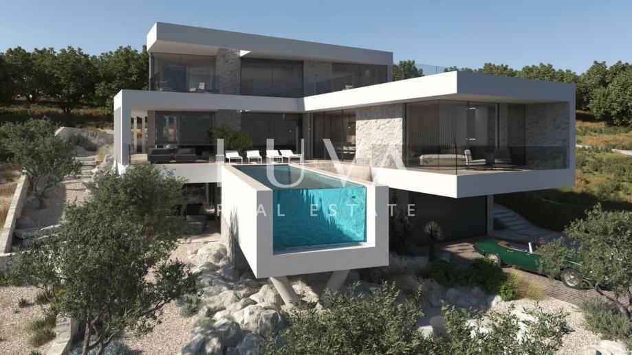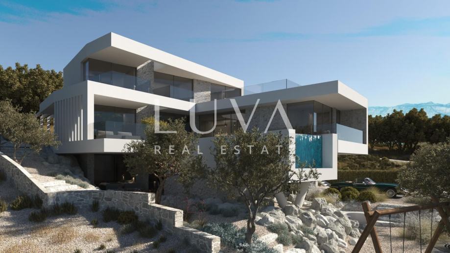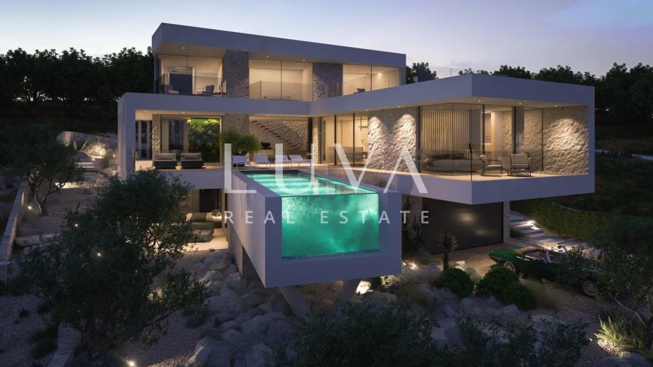 Nekoliko osnovnih informacija o projektu vile: 470 m² vila, viseći vanjski bazen, unutarnji bazen s protustrujnim plivanjem i masažom, finska sauna, parna kabina, horizontalni tuš, 5 spavaćih soba, 7 kupaonica, ured ili soba za zaposlenike, igraonica/vinski podrum, vanjska kuhinja, garaža za 2 vozila, mediteranski vrt…