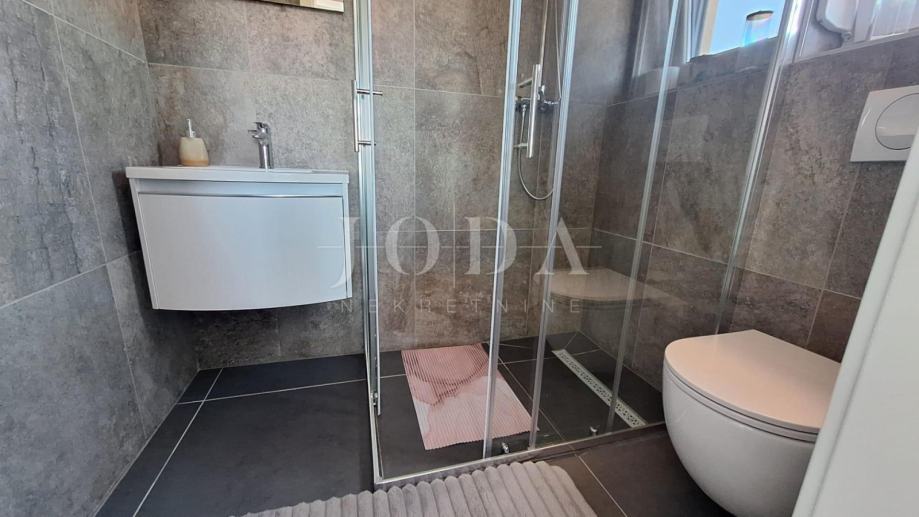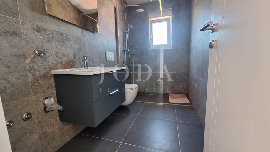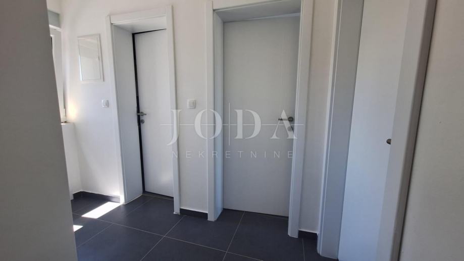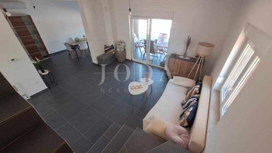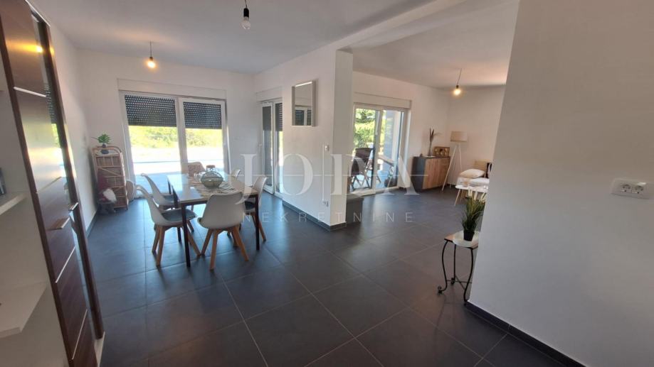 Prodaje se nova kuća površine 138 m2, sagrađena na parceli površine 851 m2. Kuća se sastoji od prizemlja i kata. U prizemlju je hodnik, kupaona, manja spavaća soba, open space boravak, kuhinja i blagovaona, malo spremište. Na katu su 3 spavaće sobe i dvije kupaone. Dizalica topline, klimatizirano, namješteno.