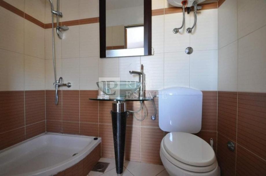 Stambenu površinu od 100 m2 čine dnevni boravak, kuhinja s blagovaonom, tri spavaće sobe s vlastitim kupaonicama i izlazom na terasu te još jedan dodatni wc. Interijer je uređen autohtonim mediteranskim stilom.
