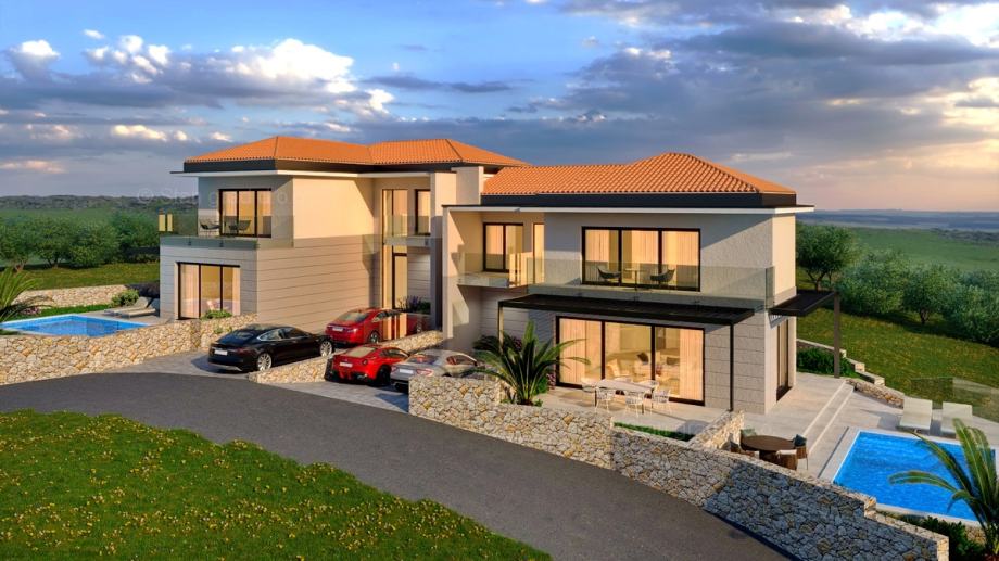 Vrbnik, luksuzna dvojna primorska villa s otvorenim pogledom na more (prodaja)
