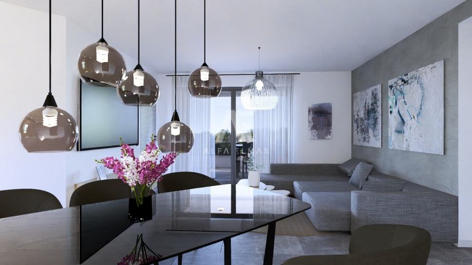 Smješten u idiličnom okruženju zelenih pojaseva, ovaj prostrani apartman na drugom katu površine 101,52 m² (NETTO 94.29) predstavlja savršen sklad između modernog luksuza i prirodne harmonije. Orijentiran prema istoku i jugoistoku, prostor je ispunjen obiljem prirodnog svjetla koje stvara toplu, prozračnu i ugodnu atmosferu tijekom cijelog dana.