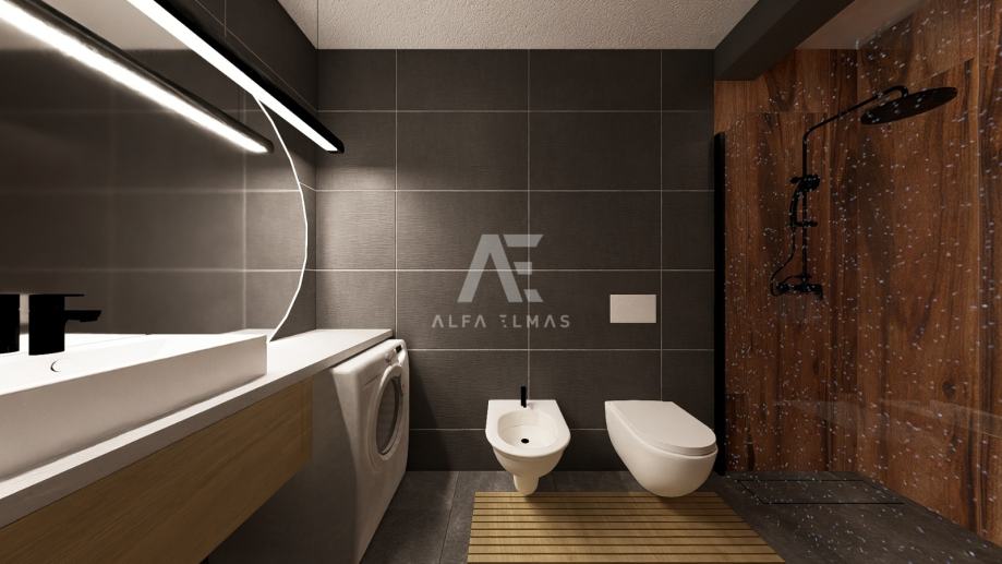 Stan odiše kvalitetom u svakom detalju — vrhunska gradnja, PVC stolarija s roletama, pažljivo odabrana keramika, električno podno grijanje i klima uređaj u svakoj prostoriji jamče udobnost i užitak življenja tijekom cijele godine. Svaka soba ima pripremu za TV priključak, a prostrana terasa od 14 m² idealna je za jutarnju kavu uz pogled na more ili opuštanje u miru i tišini.