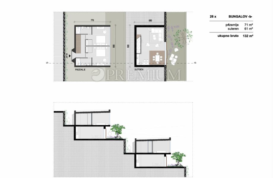 Najveća tlocrtna površina vile iznosi 150 m2, a najveći kapacitet je 6 ležajeva