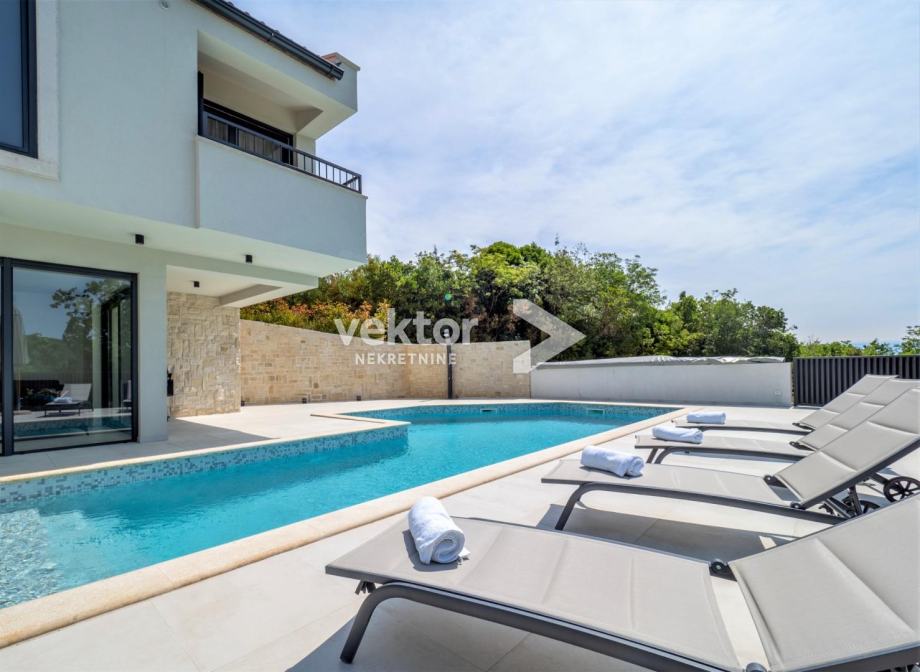 Okolica Vrbnika, prodaje se moderna kuća s bazenom i pogledom na more.