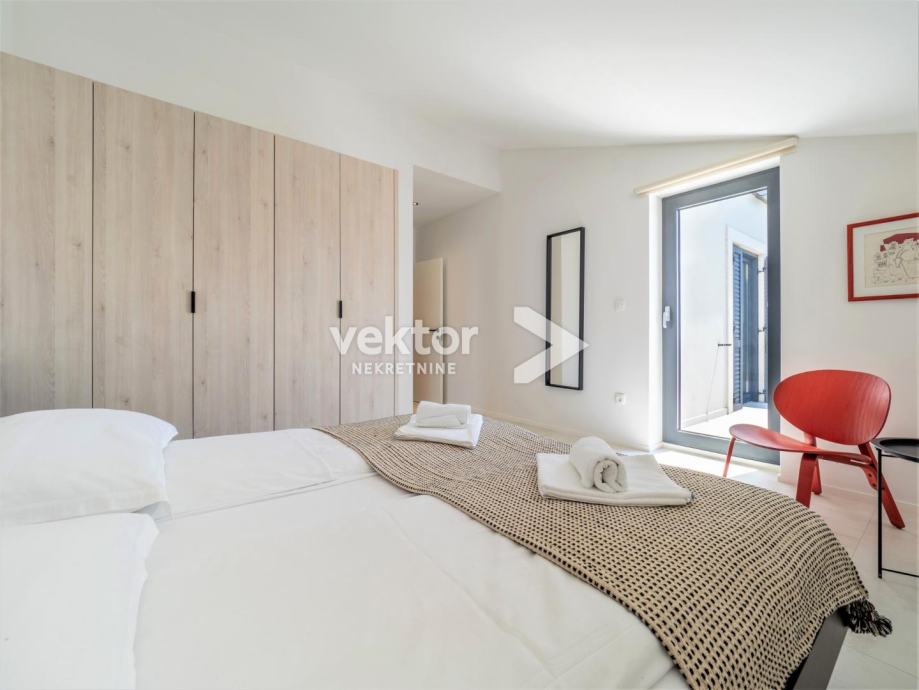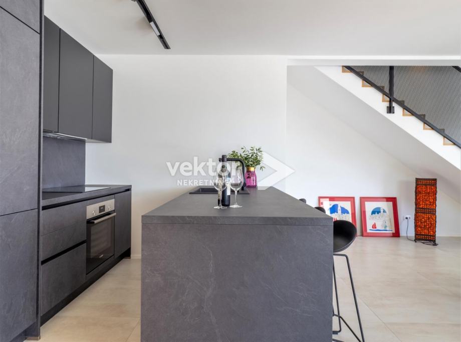 Samostojeća katnica, kojoj je u prizemlju smješten "open space" dnevni dio sa izlazom na natkrivenu terasu, sanitarni čvor i ostava, a na katu su tri spavaće sobe. Svaka spavaća soba ima vlastitu kupaonu i izlaz na balkon, dvije sobe dijele jedan balkon, a jedna ima vlastiti.