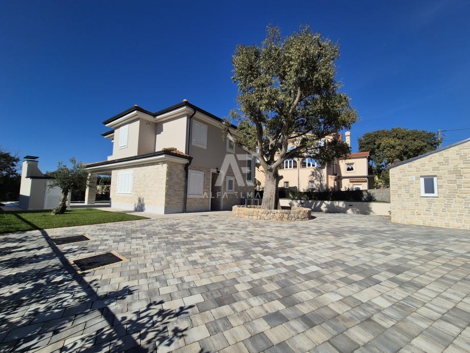 Vanjski prostor: U sklopu vile nalazi se pomoćni objekt s saunom, jacuzzijem i tušem te zidani roštilj obložen kamenom uz natkrivenu terasu za ugodna druženja i obiteljske večere na otvorenom. Osim toga, vrt je obogaćen mediteranskim biljem i zelenim površinama, uz sustav za navodnjavanje.