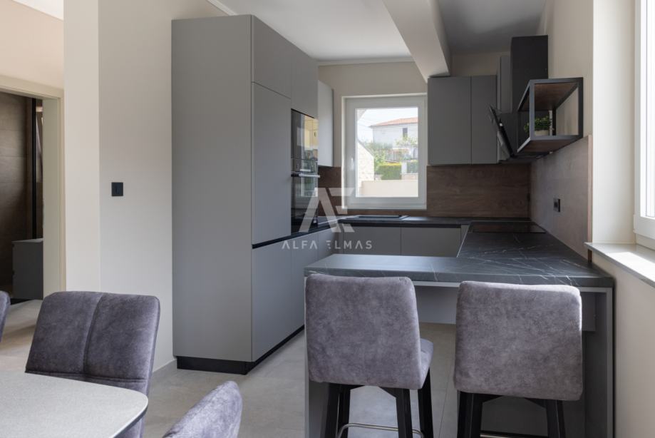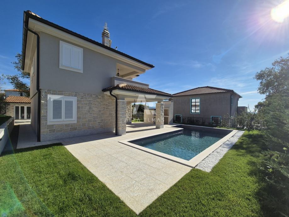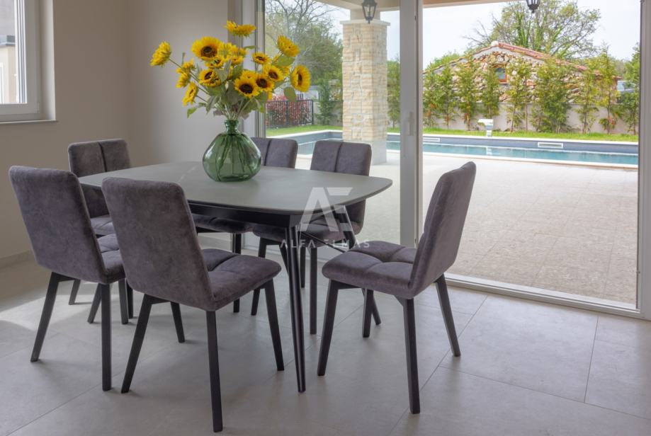Vila je potpuno klimatizirana i opremljena podnim grijanjem, alarmnim sustavom i modernim sadržajem