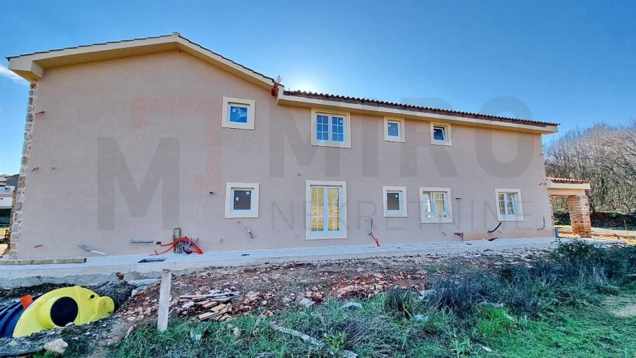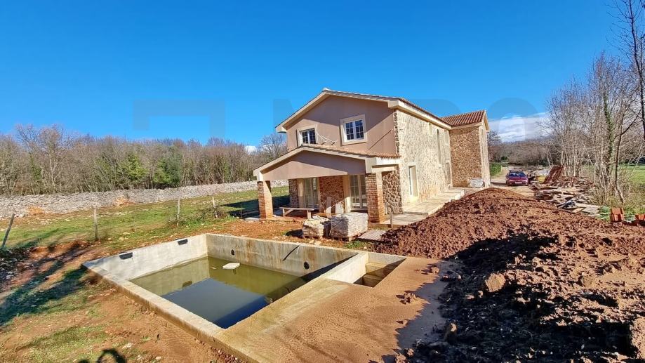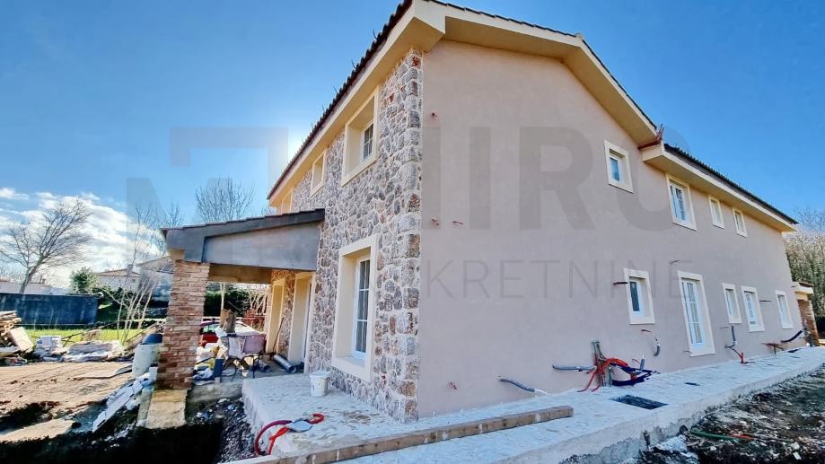 U agenciji Miro nekretnine prodaje se lijepa mediteranska dvojna kuća na Otok Krk u okolici mjesta Vrbnik. Dvojna kuća izgrađena je na 2 etaže. Kuća se proteže na ukupnoj površini 150 m2. Sastoji se od prizemlja i kata. U prizemlju se nalazi ulazni hodnik, prostrani dnevni boravak, kuhinja i blagovaona. Nekretnina sadrži ukupno 3 spavaće sobe raspoređene na 1. i 2. katu, te 2 kupaonice. Na okućnici se nalazi veliki bazen, te natkrivena terasa s roštiljem. Na dvorištu nekretnine mogu se komotno parkirati 2 vozila. Ova nekretnina je u vlasništvu fizičke osobe i na ime njenog prijenosa kupac kuće je u obvezi plaćanja poreza na promet nekretnine u visini 3%. Prodavatelj kuće jamči urednu vlasničku dokumentaciju te brz prijenos vlasništva nekretnine. Radovi planiraju biti završeni do kraja ožujka 2023. godine.