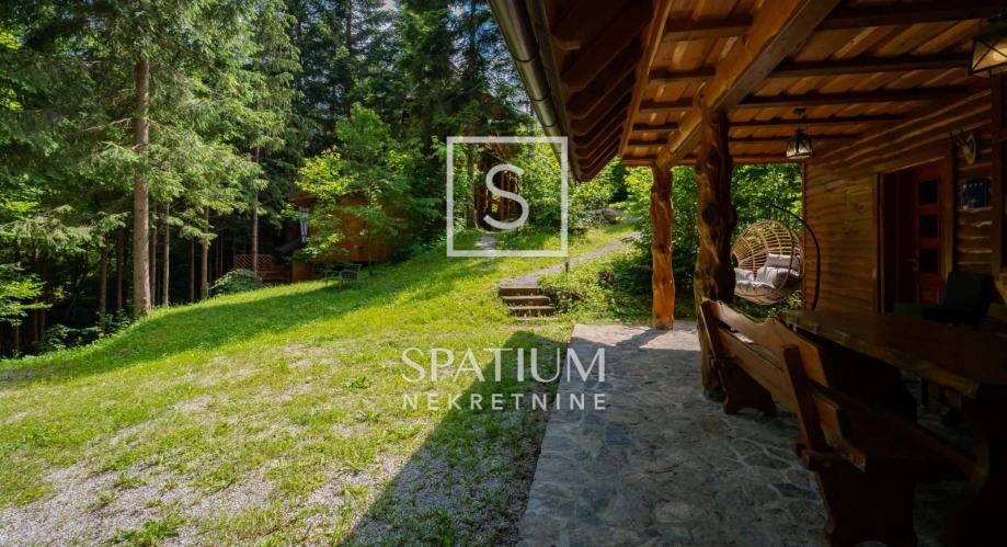 Smještena je na parceli od 2051m2, okružena prekrasnom šumom do koje vodi asfaltirani put.