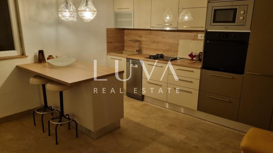 Kuća je višekatnica zidane gradnje (beton i opeka) i sastoji se od suterena, prizemlja, kata i potkrovlja, pri čemu su sve etaže povezane unutarnjim stepenicama. Postoji mogućnost jednostavne prenamjene u dva odvojena stana izgradnjom vanjskih stepenica. U suterenu (80 m²) nalazi se velika kuhinja s mogućnošću uređenja apartmana te garaža. Prizemlje (100 m²) obuhvaća dnevni boravak s blagovaonicom i kuhinjom, kupaonicu s WC-om, ostavu te poslovni prostor koji vlasnik trenutno koristi za računovodstveni servis. Na katu (100 m²) smještene su četiri spavaće sobe i dodatna kupaonica s WC-om. Potkrovlje površine 100 m², uz manja ulaganja, može se urediti u dodatni stambeni proctor, krov je nov i podaskan, a pristup je omogućen uređenim stepeništem.
