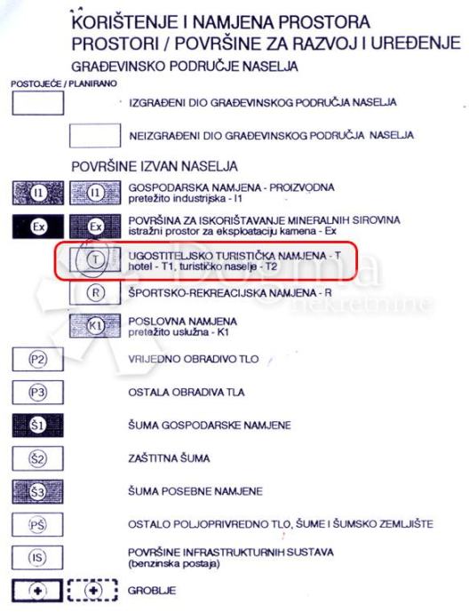 Ugostiteljsko turistička namjena - T hotel - T1, turističko naselje T2