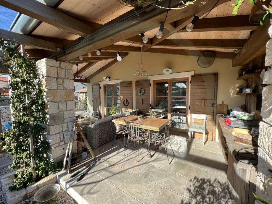 Prodaje se prekrasna nova kuća uređena u autentičnom istarskom stilu, koja spaja tradicionalnu arhitekturu s modernim detaljima.