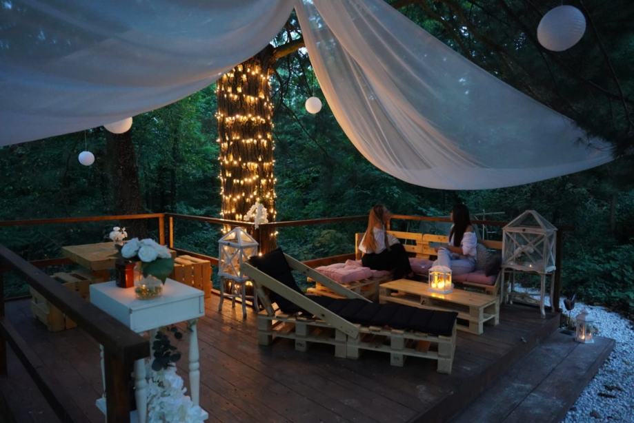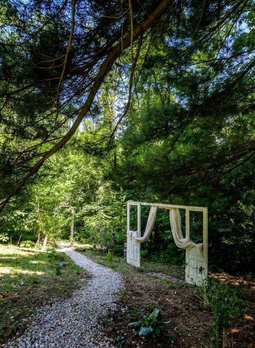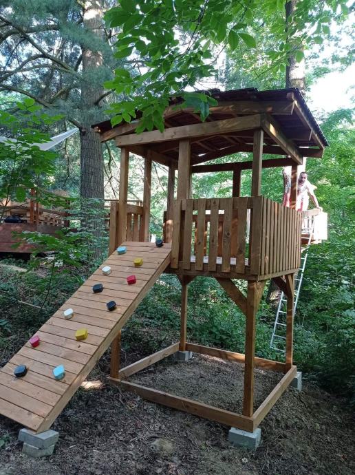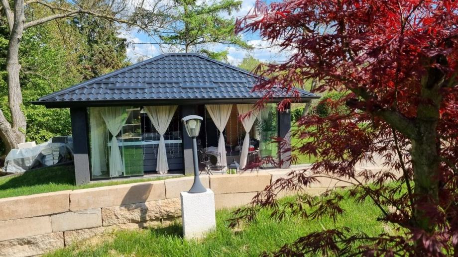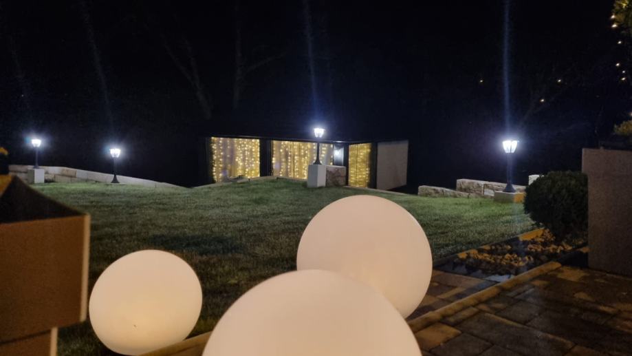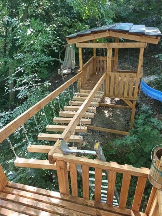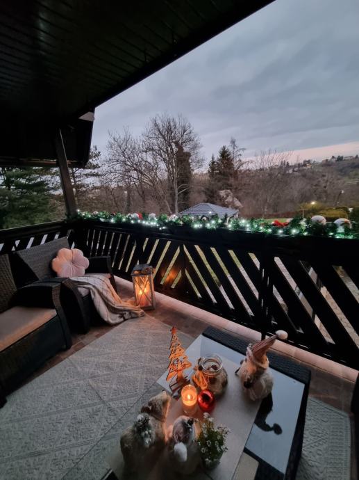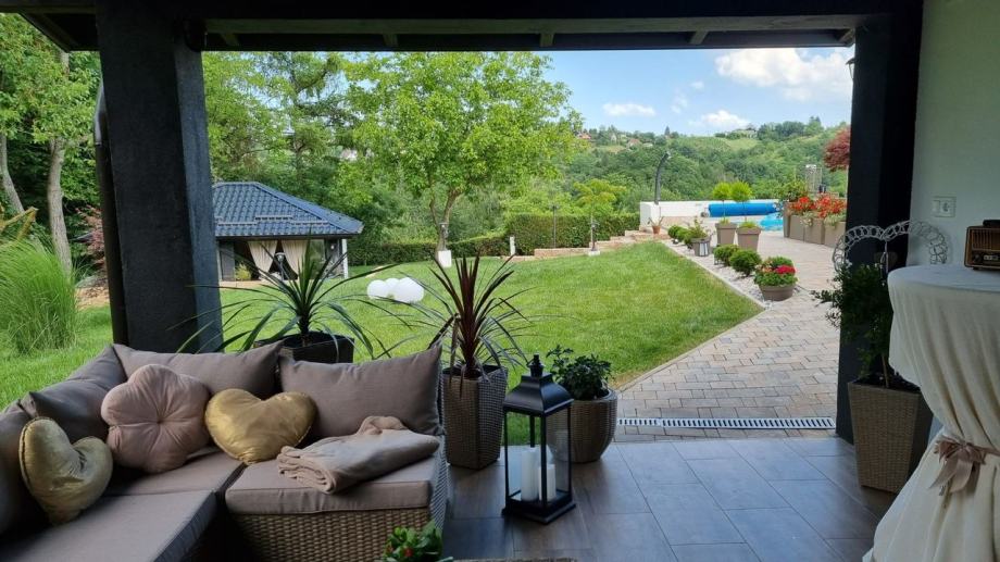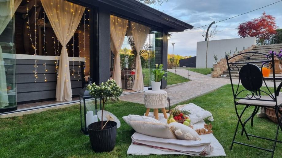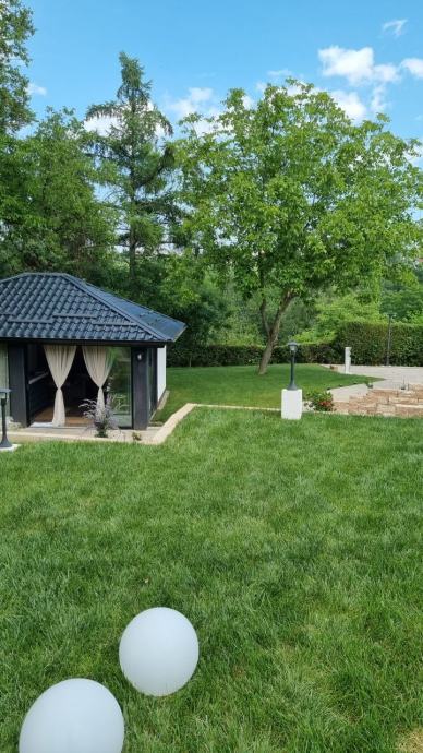 Prekrasna okućnica sa šumom i uređenom šetnicom, igralište za djecu. Kuća pruža potpunu privatnost jer je okružena zelenilom.
