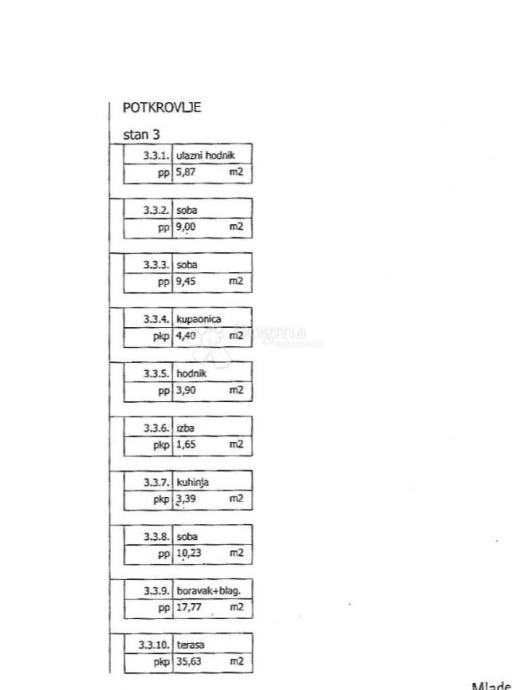 U prizemlju se nalazi poslovni prostor tihe djelatnosti, garaža te parkirna mjesta. Na prvom katu smještena su dva stana, dok se na drugom, uvučenom katu nalazi prostrani četverosobni stan s velikom terasom. Svakom stanu pripada vlastito parkirno mjesto.