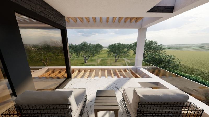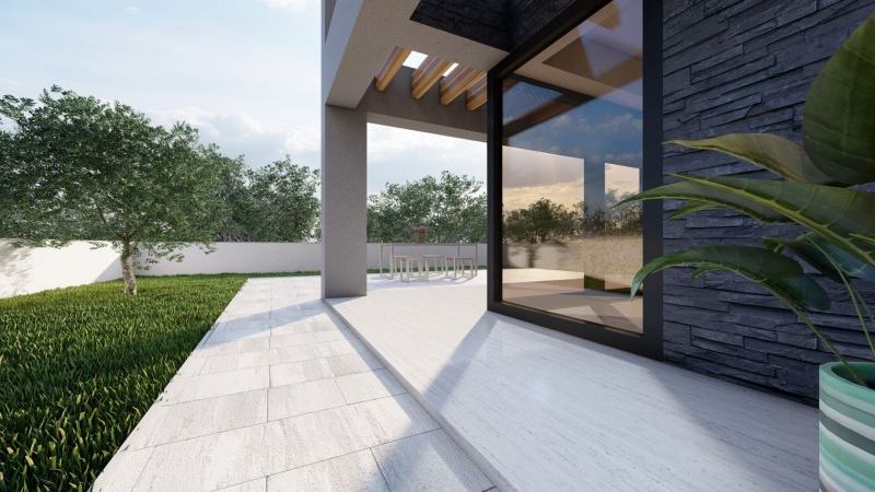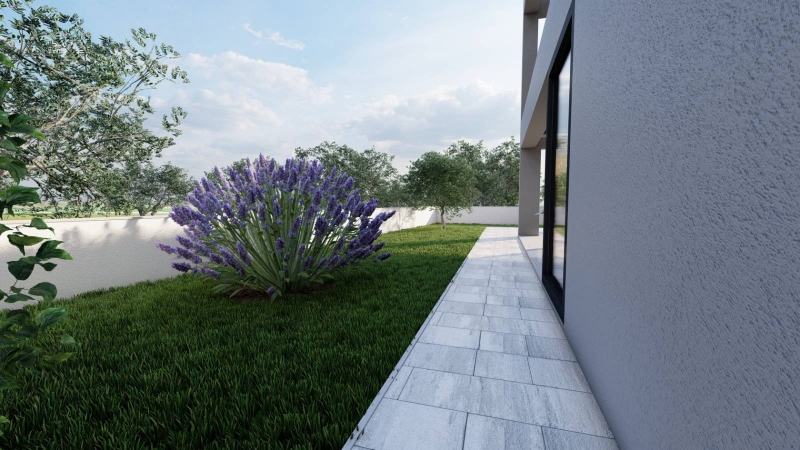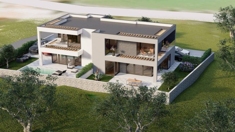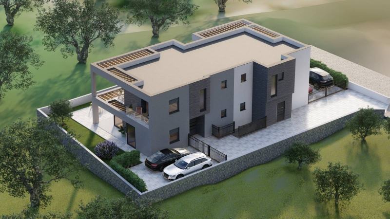 Druga polovica kuće se sastoji od podruma, prizemlja i prvog kata. U podrumu se nalaze dvije velike prostorije, koje se mogu pregraditi, te da nastanu 4 prostorije. U prizemlju se nalazi dnevni boravak sa kuhinjom i blagovaonicom, spavaća soba i kupaonica, iz dnevnog boravka i spavaće sobe ima izlaz na terasu. Na prvom katu se nalaze tri spavaće sobe, kupaonica. Nalazi se na mirnoj lokaciji, udaljena od mora 1400 metara.