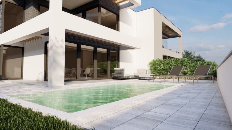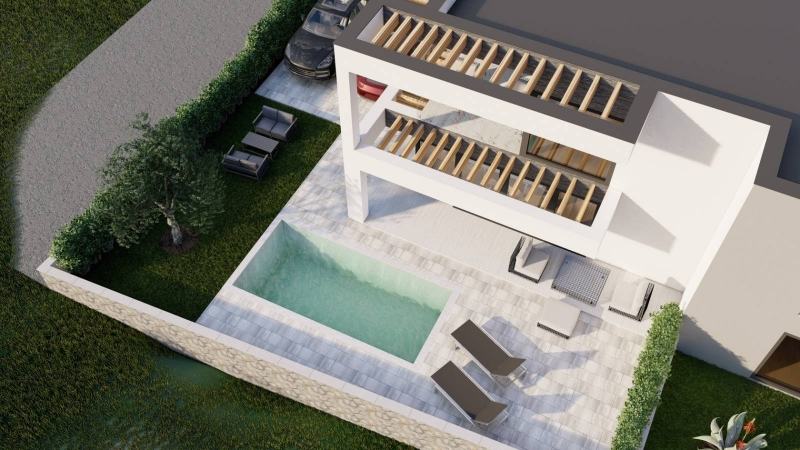 Prodajemo samostojeći objekt sa dvije spojene kuće stambene površine od 360 m2. Sastoji se od dvije kuće svaka ima stambenu površinu 180m2. Prva polovica kuće sa bazenom se sastoji od podruma, prizemlja i prvog kata. U podrumu se nalaze dvije velike prostorije, koje se mogu pregraditi,te da nastanu 4 prostorije. U prizemlju se nalazi hodnik, dnevni boravak sa kuhinjom i blagovaonicom, spavaća soba i kupaonica, iz dnevnog boravka i spavaće sobe ima izlaz na terasu. Na prvom katu se nalaze dvije spavaće sobe, svaka soba ima u sklopu kupaonicu, lođa.