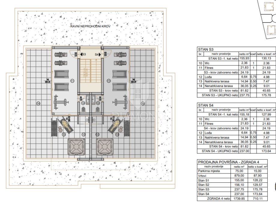 Stan dolazi s natkrivenim parking mjestom, što pruža dodatnu sigurnost i praktičnost za vaše vozilo. Ono što će vas i vaše goste neprestano oduševljavati nalazi se na vrhu zgrade, a to je ekskluzivna luksuzna zona. Zona sadrži vrhunski moderni jacuzzi, WC, teretanu i sunčalište te ljetnu kuhinju, idealno za opuštanje i rekreaciju uz prekrasan pogled na more i okolnu prirodu.