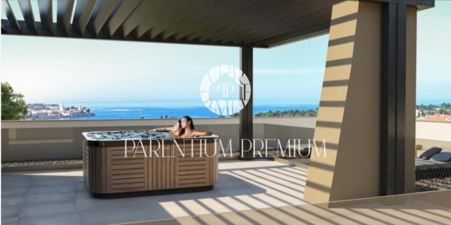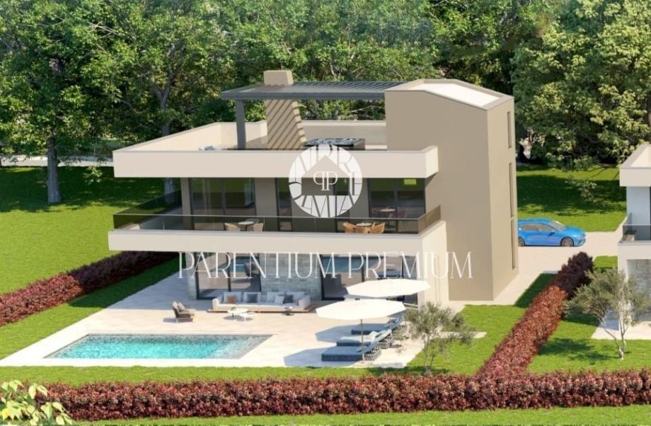 U okolici grada Poreča na vrhunskoj lokaciji smjestila se ova atraktivna prostrana vila sa bazenom, jacuzzijem, fitnessom i wellnessom ukupne površine od 306m2.