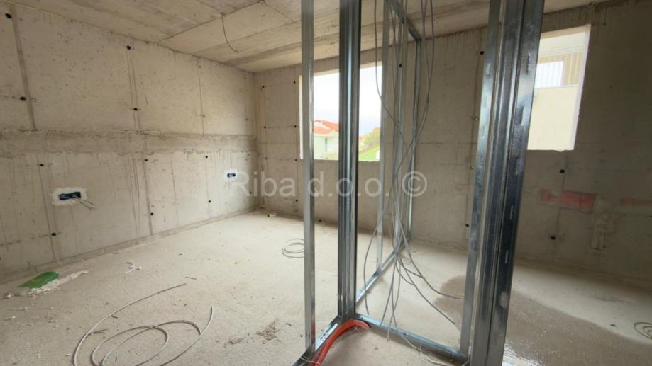 Stan na prvom katu, u južnom dijelu, se sastoji od velikog dnevnog boravka s kuhinjom i blagovaonicom, prostrane spavaće sobe, kupaonice, te natkrivene terase.
