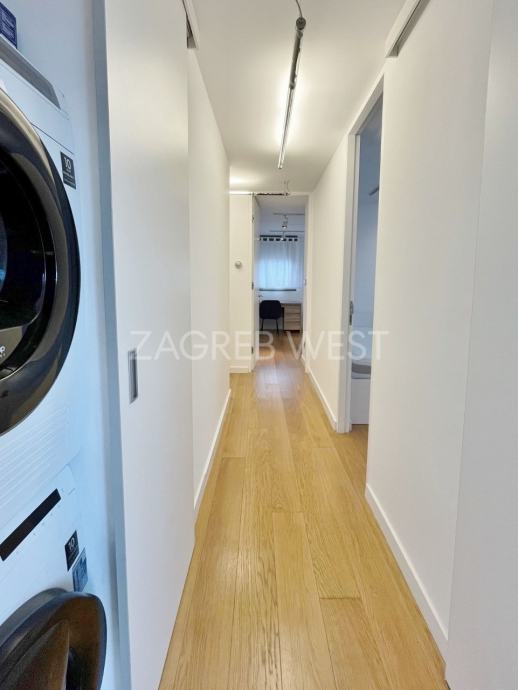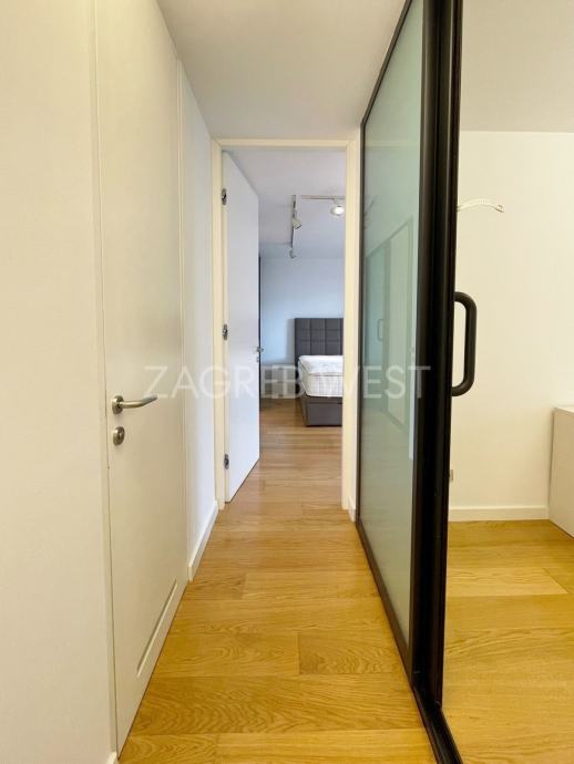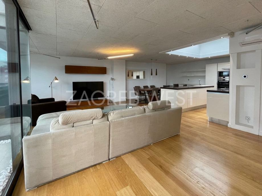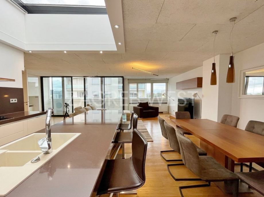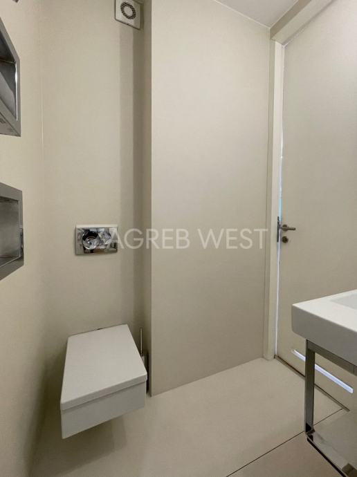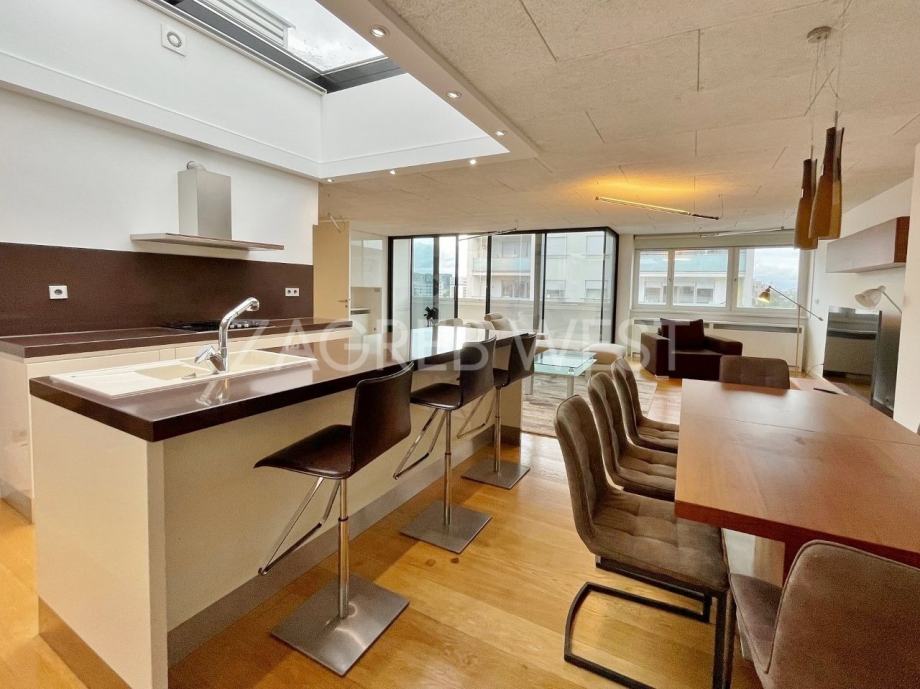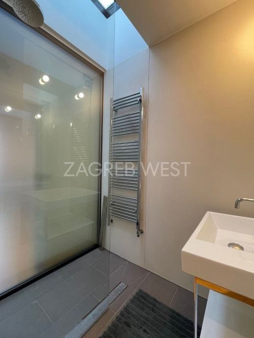 Vrhunski opremljen i namješten penthouse u novijoj zgradi u širem centru, idealan za ljubitelje života u blizini svih sadržaja. U stan je ugrađena izuzetno kvalitetna oprema-Scavollini kuhinja s BOSCH aparatima, široki parket od češljanog hrasta, spušteni stropovi s inovativnom rasvjetom, fan-coil sustav grijanja i hlađenja, dijelovi staklenog stropa iznad kuhinje i kupaonice, garderoba, ugrađeni ormari, podno grijanje u kupaonicama, elektične rolete, smart-house sustav.
