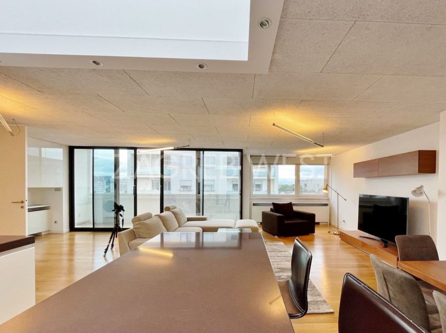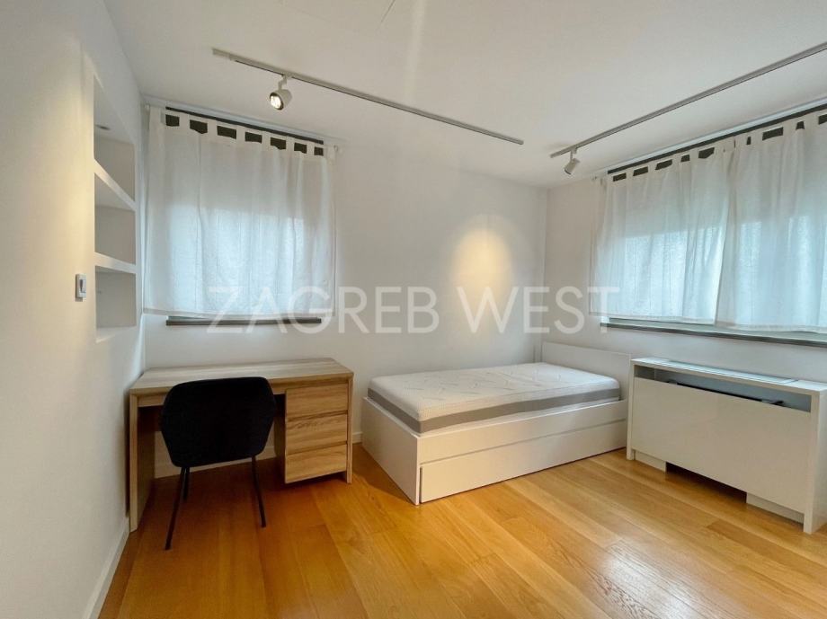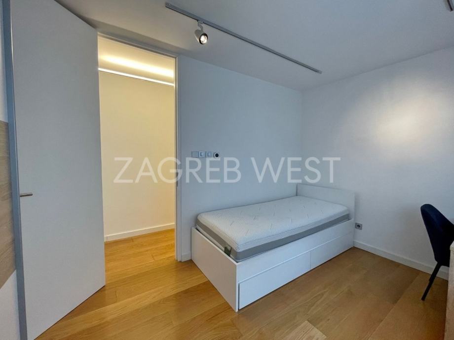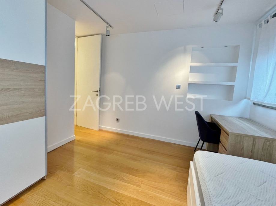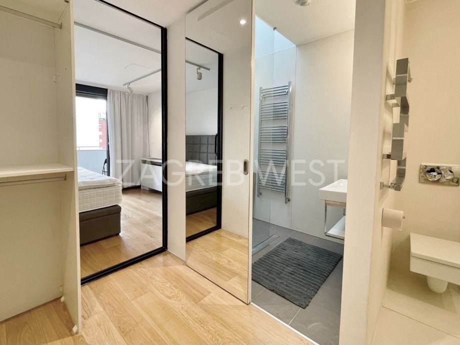 Vrhunski opremljen i namješten penthouse u novijoj zgradi u širem centru, idealan za ljubitelje života u blizini svih sadržaja. U stan je ugrađena izuzetno kvalitetna oprema-Scavollini kuhinja s BOSCH aparatima, široki parket od češljanog hrasta, spušteni stropovi s inovativnom rasvjetom, fan-coil sustav grijanja i hlađenja, dijelovi staklenog stropa iznad kuhinje i kupaonice, garderoba, ugrađeni ormari, podno grijanje u kupaonicama, elektične rolete, smart-house sustav.